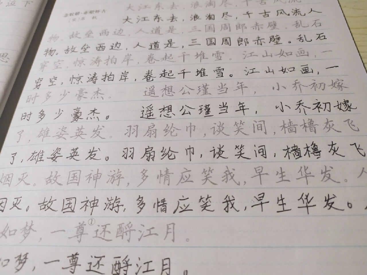 %语文今天要求背默改念奴娇赤壁怀古,这首还算好背,而且异常好默!